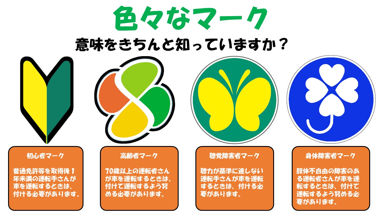 Twitter 上的 奈良県警察交通部 運転手さんなら一度は付けたことがある初心者マークの他にも いろいろな種類のマークがあるのは知っていますか もし 運転中に見かけたときは ゆずり合い 思いやりを持って運転しましょう 道路交通法 初心者マーク 高齢者